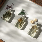 ガラスのボトルに入った植物が美しいアクセントを与え、