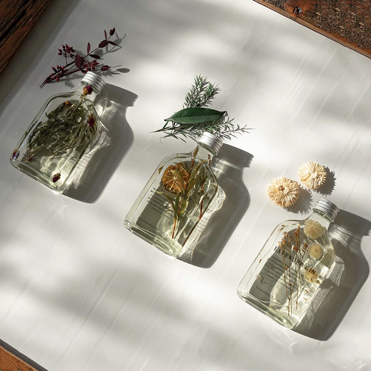 ゼラニウム、バラ、マグノリア、パチョリの華やかなフローラルのトップノートから、ブラックカラント、豊かなムスクのラストへと香る、落ち着きのあるゆったりとしたブレンドです。