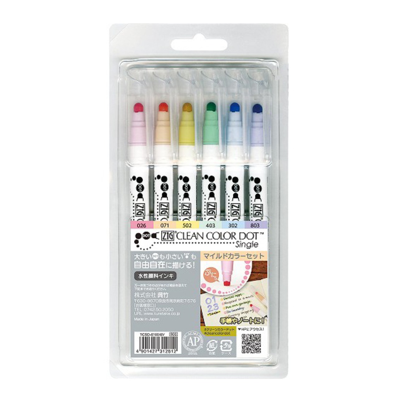 呉竹|ZIGクリーンカラードット シングル:マイルドカラーセット